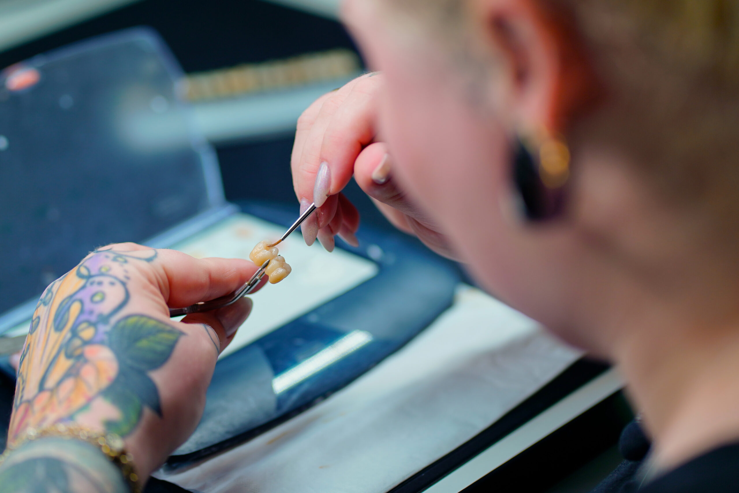 Herstellung von natürlich aussehendem Zahnersatz.
